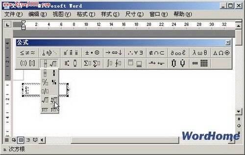 第3步,打开公式编辑窗口,在“公式”工具栏中选择合适的数学符号(例如根号),如图所示。