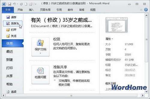 以上是为您收集整理的【将Word 2010文档直接保存为PDF文件】办公软件教程的全部内容,希望文章能够帮你了解办公软件教程将Word 2010文档直接保存为PDF文件。
