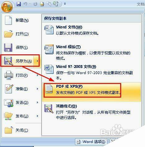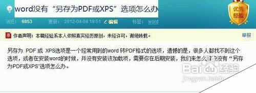 5、假如你的word没有另存为pdf插件,你需要手动安装(许多word07是没有的,不仅仅你自己没有奥)。去百度经验里搜索:word没有“另存为PDF或XPS”选项怎么办 。根据这个教程你会找到解决方法。记得投票支持作者呀