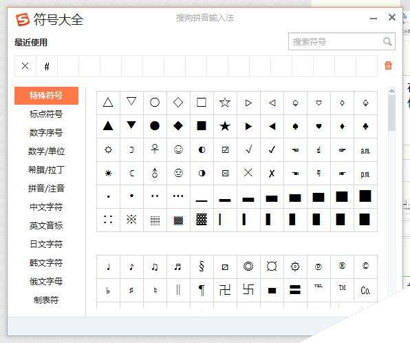 3、如果您实用的是搜狗输入法时,可以点击它的符号大全,可以在它的里面找到一些要用的符号。