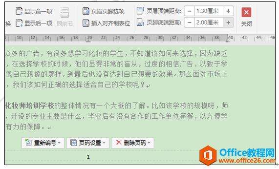 首先,我们打开一个有页眉和页脚的文档,双击页眉,等页眉变成能编辑的状态,如图1