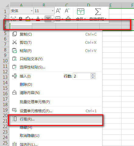 2、在弹出的“行高”里面输入需要设定的行高值后点击确定,即可完成设置。