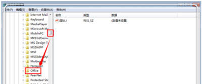 3、将右边的滑块拉到底,双击“HKEY_LOCAL_MACHINE”依次双击打开“Software”-》“Microsoft”-》“Office”-》“Word”(office2013以上版本word变成了Outlook),将“word”文件下的Addins(放word加载项的)