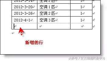 选取表格的最后一个单元格,按tab键即要新增一行。
