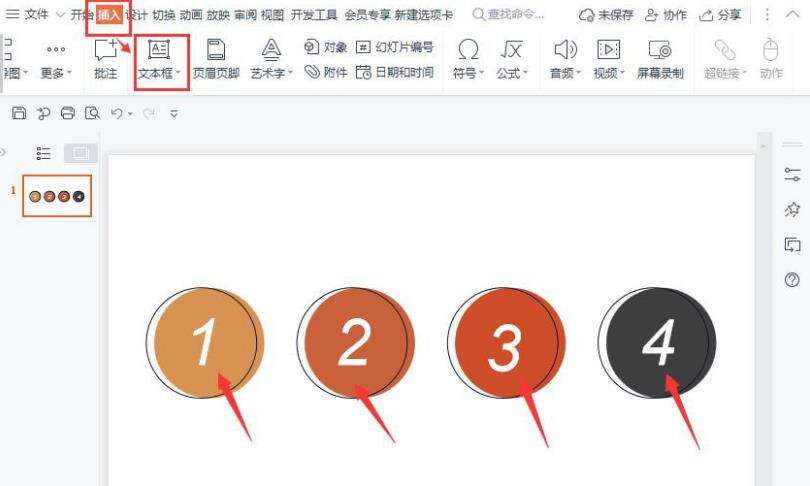 5.最后,点击插入菜单中的文本框按钮,输入数字序号,并适当调节数字颜色即可