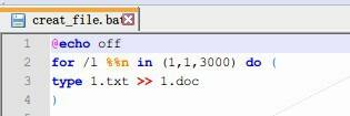 1、修改下述代码中的3000为你需要的数字。这段代码的意思是,把1.txt文件内容写入到1.doc,并且循环3000次。