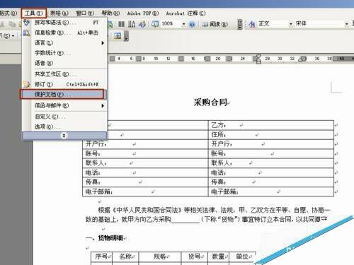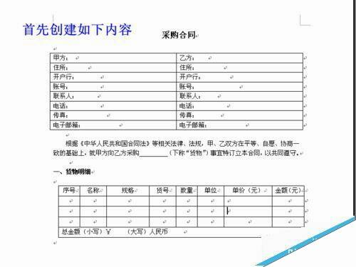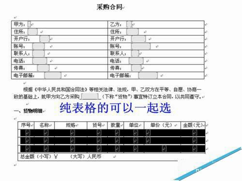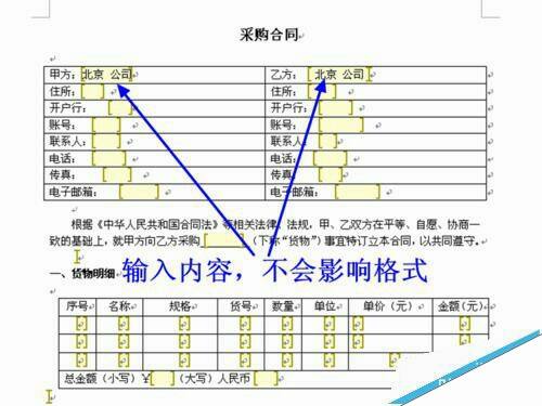 word怎么锁定指定的文字表格制作固定模式合同?