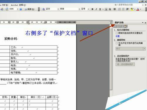 3、打开之后,在右侧多出了一个“保护文档”的窗口。