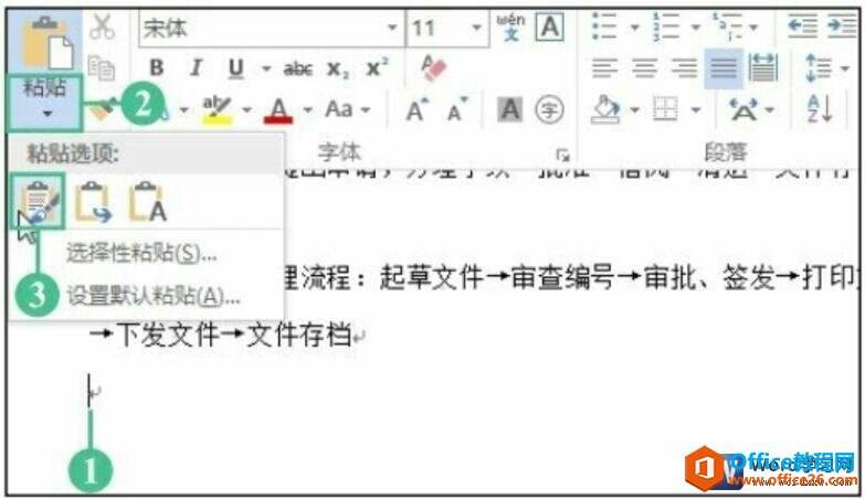 将插入点定位在需要粘贴的文本位置处,单击“粘贴”下三角按钮,在展开的下拉列表中单击“保留源格式”选项,如下图5所示。