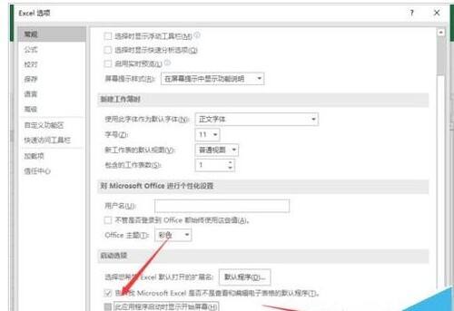 5.在Excel选项对话框窗口中,将选项卡切换到“常规”选项卡栏。如图所示;