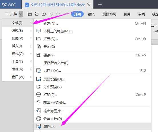 【文件】右侧,依旧单点开下拉之后,单点开【文件-属性】。