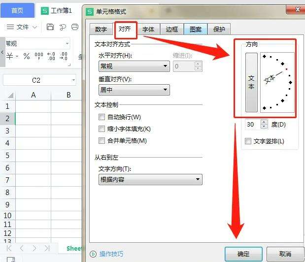2、点击【对齐】,再在方向栏中设置水印需要的倾斜角度,设置完成后点击下方确定。