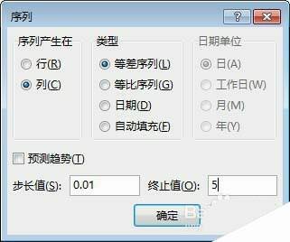 3、在步长值中填0.01(注意该值很关键,要尽量小才能让曲线光滑),终止值填5(根据自己需求画哪段函数填写到哪里)