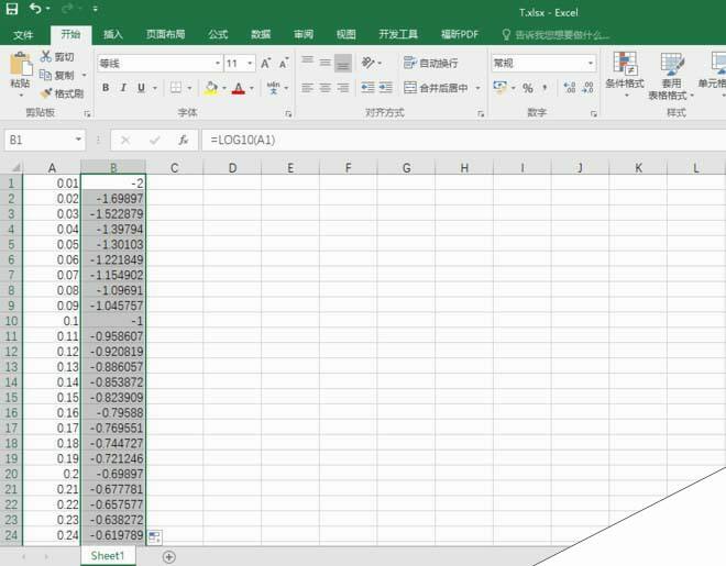 6、向下填充,求出所有对应的纵坐标值(对数值)