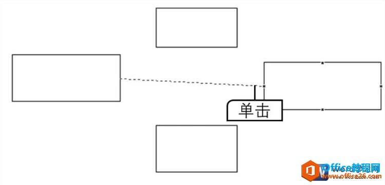 3、单击所选矩形右侧边框中间的控点,此时在所选矩形的四周将出现蓝色的点,拖动鼠标至右侧矩形边框上,此时连接符与右侧矩形建立连接,如图2所示。