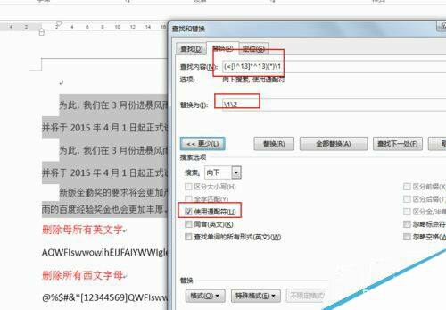 3、在查找内容中输入(<[!^13]*^13)(*)1,替换为12,使用通配符,全部替换。
