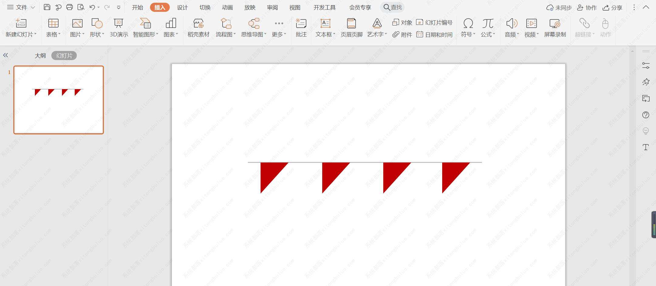 3、同时再插入大小一致的直角三角形,按照如图所示的形状,摆放在直线的下方。