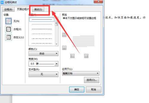 3、然后在边框和底纹窗口,选择“底纹”选项。
