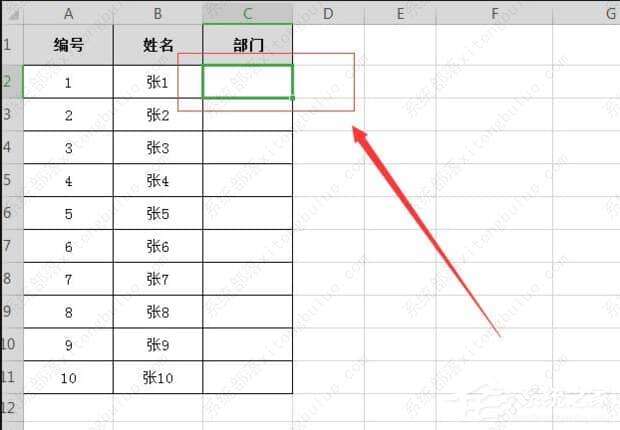 2、点击选中要增加下拉框选项的单元格,如图,选中的是C2。