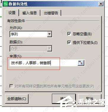 6、在“来源”的下方输入下拉框选项的内容,每个内容需要用逗号隔开。