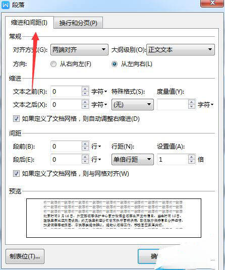 4、在弹出的“段落”窗口中,点击“缩进和间距”标签。