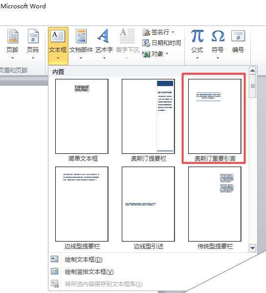 word2010怎么制作奥斯汀重要引言文本框样式?