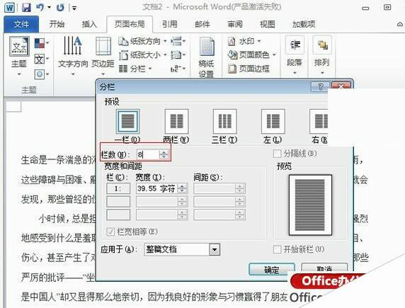三、在栏数里面可以自己任意填写数字,还可以设置栏的宽度。