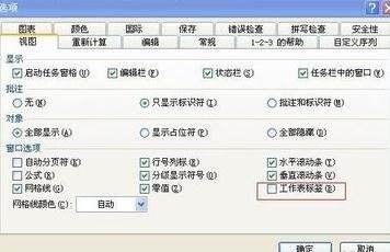 找到“工作表标签”后,在其前方的方框里面打勾,然后单击确定按钮即可。