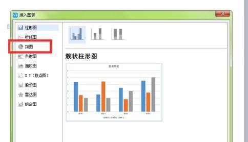 5、弹出来的图标之中,有一个叫做饼图的选项,点击一下。