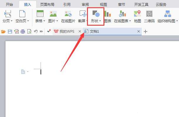 3、点击插入选项,在其编辑工具区里找到形状选项,如图所示: