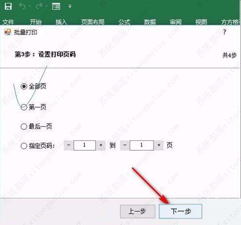 6、紧接着是对批量打印的操作设置页码,我们根据自己的需求选择全部页之后点击下一步按钮。