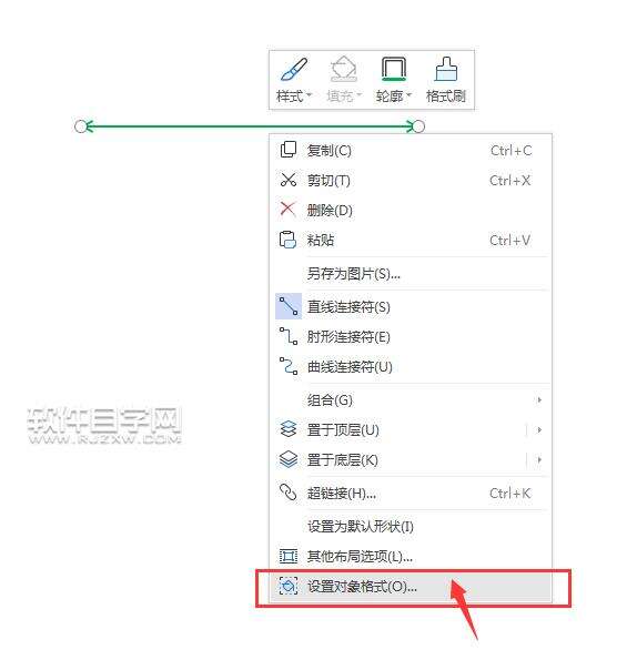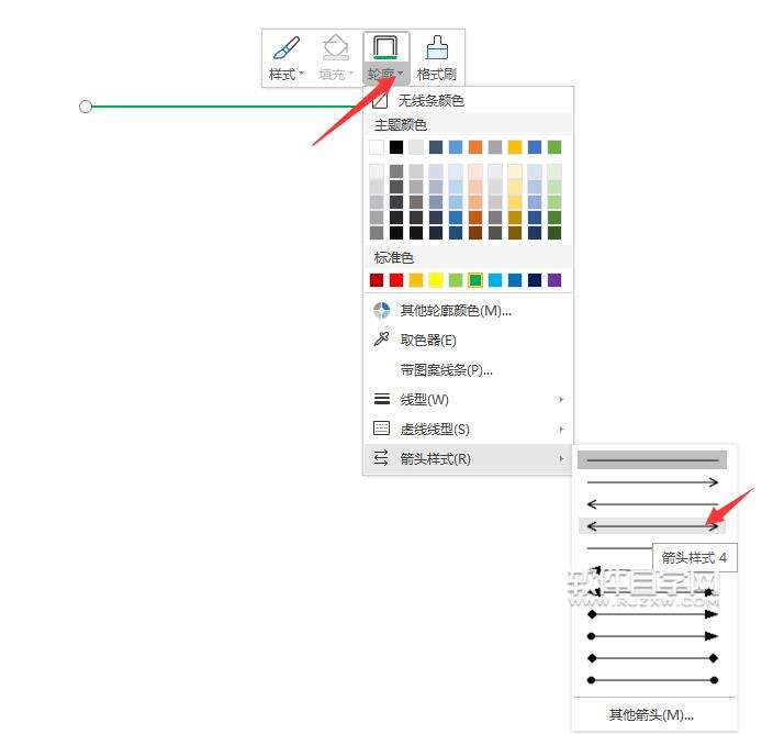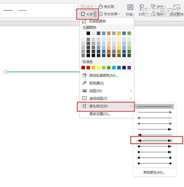 第3步、另一种方法,就是选中直线,右击选中轮廓里面的箭头样式,选中一种你想要的箭头样式。效果如下: