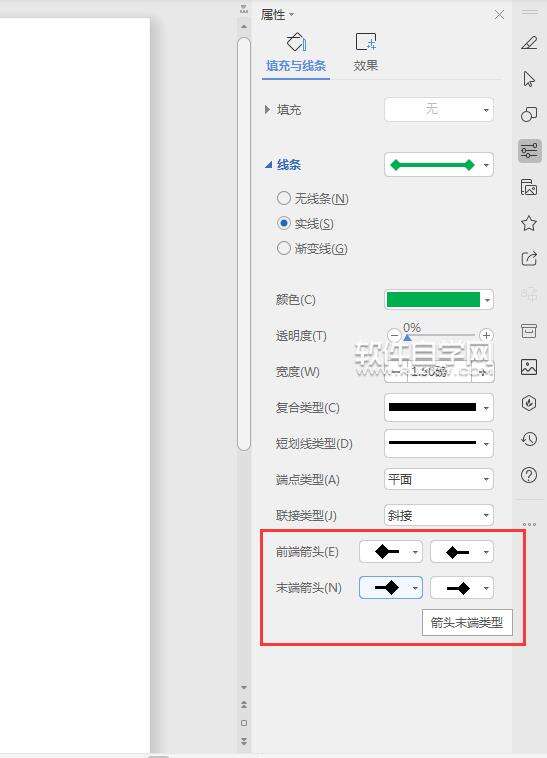 第5步、然后右边就会弹出属性,在线条选项下面设置箭头样式。效果如下: