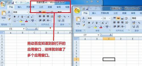 这时候将百度知道excel拖动到新弹出的新窗口内,这样我们就同时像word一样打开两个excel窗口了。