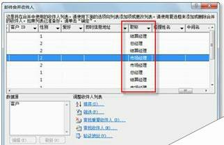 5. 单击【确定】按钮关闭“筛选和排序”对话框后,在“邮件合并收件人”对话框中就只剩“经理”和“总经理”级别的客户了。可以在收件人列表框中,通过向右拖动水平滚动条,来查看“职称”列中的信息,进行确认,如图5所示。