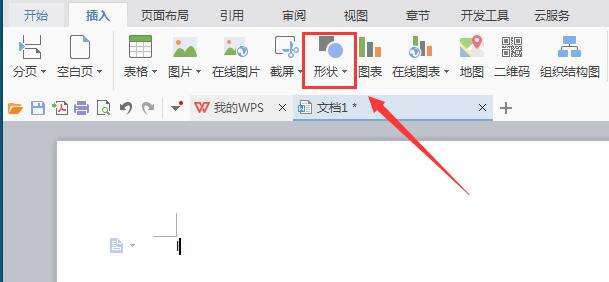 3、点击插入选项,在其编辑工具区里找到形状选项,如图所示: