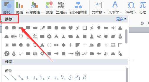 4、点击形状选项,在其子级菜单里找到推荐选项,如图所示: