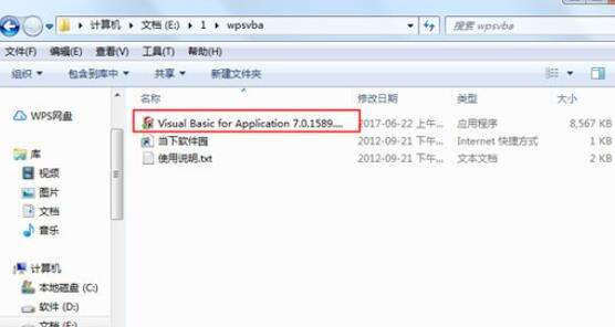 接着要使用“宏功能”的话,就需要下载VBA宏插件,下载完成之后,进行解压,就能看到文件夹里的“exe”文件了,点击开始安装,根据提示操作安装;