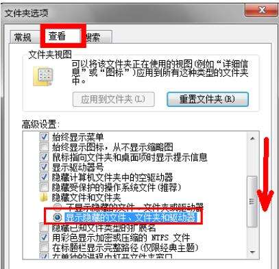 在文件夹选项设置的界面上,点击上方的第二个标签页,即查看。