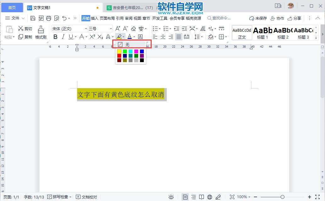 以上是为您收集整理的【WPS2022文字下面有黄色底纹怎么取消】办公软件教程的全部内容,希望文章能够帮你了解办公软件教程WPS2022文字下面有黄色底纹怎么取消。