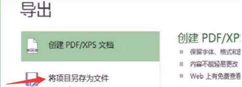 在弹出的界面中我们选择将项目另存为文件,如图所示