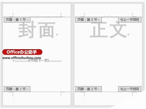 此时,文档分成两个部分,封面为第一节,正文为第二节。