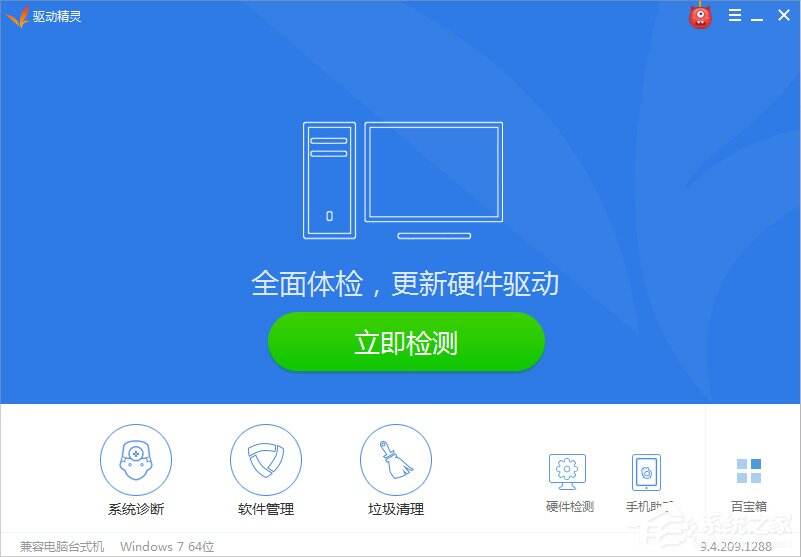 5、显卡驱动不正常,可以手动重新安装显卡驱动。如果自己没有显卡驱动,也不知道具体是什么显卡的话,可以借助一些第三方软件。 这里以“驱动精灵”为例。首先打开驱动精灵,软件会自动检测系统的驱动。等待软件检测完成以后,在首页找到显卡,点击“升级”。