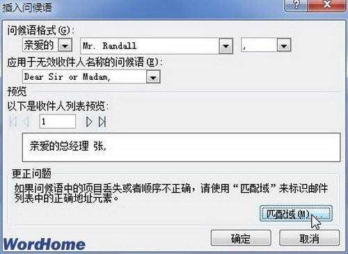 在Word2010中插入问候语进行邮件合并