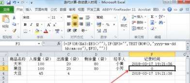 3.在F2单元格里面输入公式=IF(OR($A2:$E2<>""),IF($F2="",TEXT(NOW(),"yyyy-mm-dd