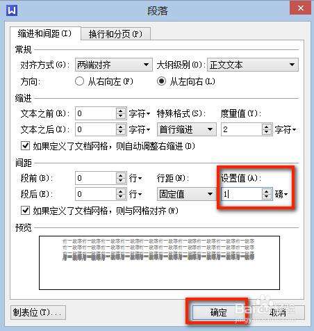 3、行距后面的设置值手动输入为1——确定,这样就会删除这个空白页