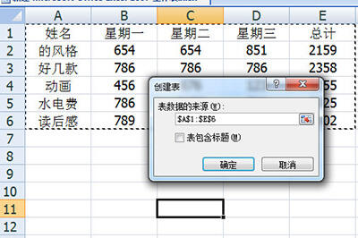 1、我们首先按键盘上的快捷键CTRT+T使用Excel自带的模板创建表,并框选表格,记得勾选包含表标题。