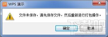 3、WPS演示的文件打包解决了当演示文档包含了多媒体资源时(视频,音频等)进行网络传输时,另一台计算机无法打开其中的多媒体文件。因为WPS演示保存时,只是保存了一个指向该资源的索引,并不包含该文件,所以才无法打开,只有打包的时候,才会提取相关资源进行操作。一般来说打包成压缩文件比较好。我们直接点击将演示文档打包成压缩文件。会提示我们需要要保存一下。