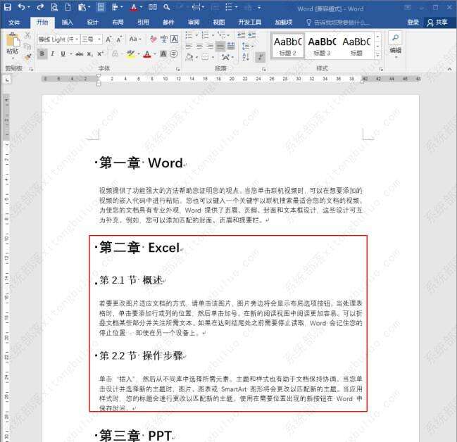 这样,第二章内容就创建了一个书签,从第二章内容的起始和结束位置的标记可以明显辨认出书签的存在。