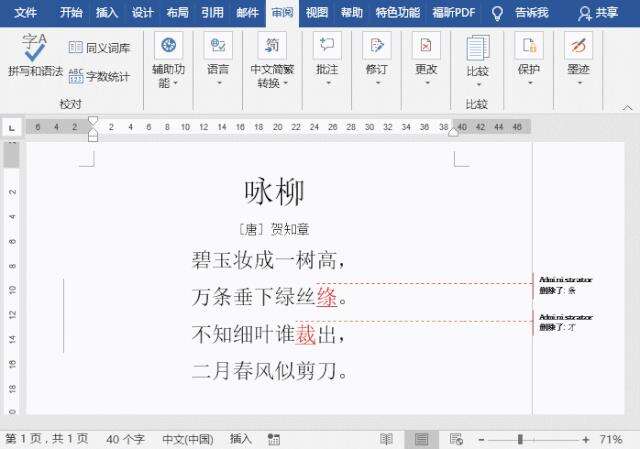 使用鼠标点击左侧的竖线标记,可以让修订的显示方式在所有标记和简单标记之间切换,如下图最终显示效果为简单标记状态。